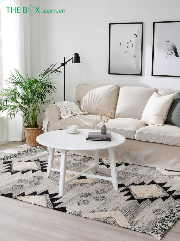 Không chỉ vậy, thảm phòng khách còn giúp che đi các khuyết điểm. Giúp ngôi nhà thêm hoàn hảo hơn.