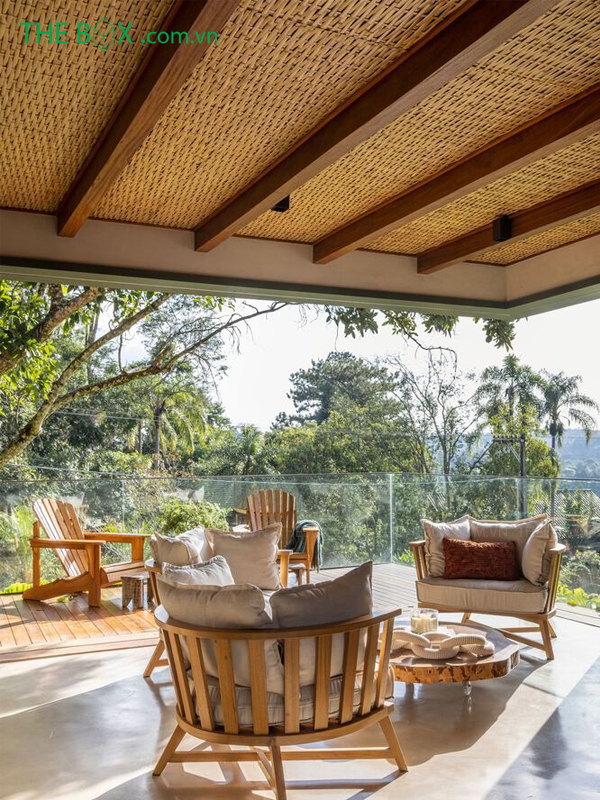 Bên dưới giàn, bạn có thể đặt một bộ bàn ghế để ngồi nghỉ ngơi, thư giãn và ngắm nhìn những cảnh vật xung quanh.