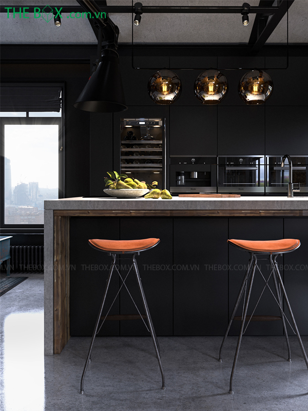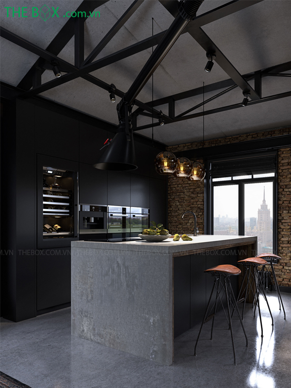 – Industrial chú trọng đến các màu sắc lạnh như đen, nâu, xám. Trong thiết kế industrial, không gian toát lên vẻ mạnh mẽ, cá tính với sắc lạnh đặc trưng.