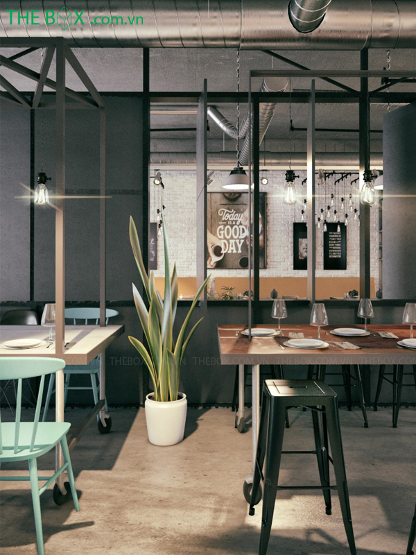 Ngày nay, phong cách này được áp dụng trong cả thiết kế nội thất căn hộ, quán cà phê, nhà hàng, văn phòng, … thể hiện cá tính mạnh của chủ nhân.