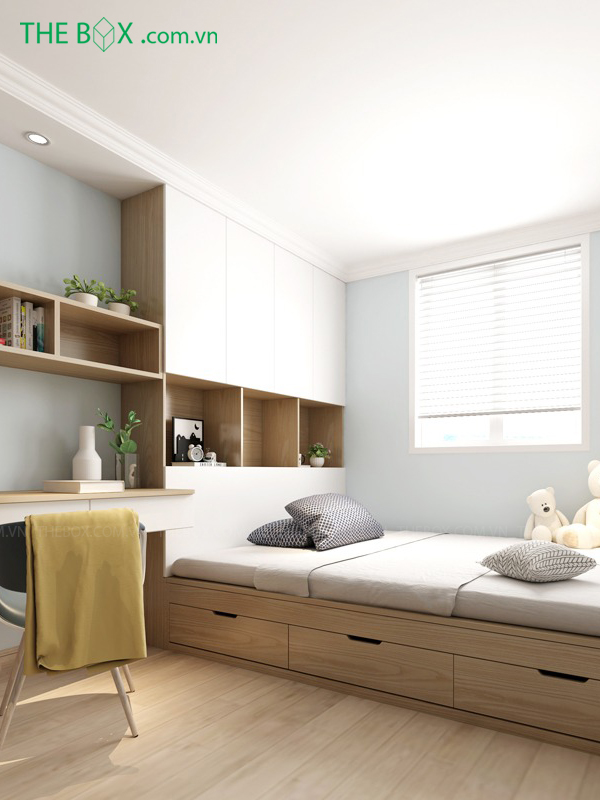 – Giường ngủ thông minh: một số loại giường ngủ kết hợp bàn làm việc, giường ngủ gấp gọn hay thiết kế các ngăn tủ chứa đồ dùng bên trong giúp tiết kiệm diện tích.
