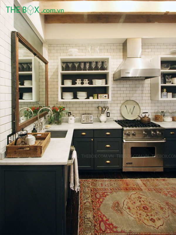 Giống với phong cách tân cổ điển, phong cách Vintage cũng mang tính đối xứng, cách sắp đặt từng vật dựng theo vị trí để hài hòa với không gian. Và chắc chắn không thể thiếu một chiếc gương nghệ thuật treo tường. Giúp phản chiếu không gian, nhân đôi các sự vật trong căn phòng đó.