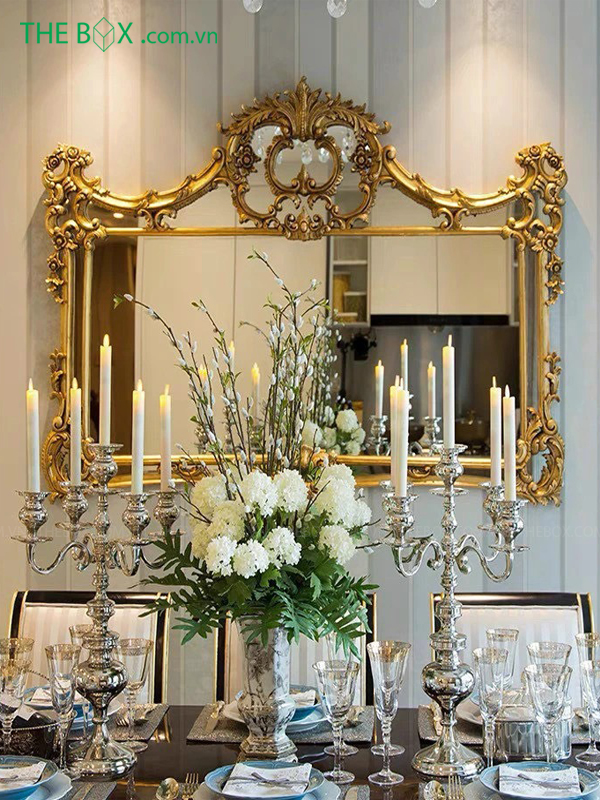 Với phong cách cổ điển, gương thường có khung bằng đồng. Được chạm khắc hoa văn tinh xảo cùng với những đường cong uốn lượn. Đa phần gương sẽ được đặt ở vị trí trung tâm để làm điểm nhấn cho không gian đó.