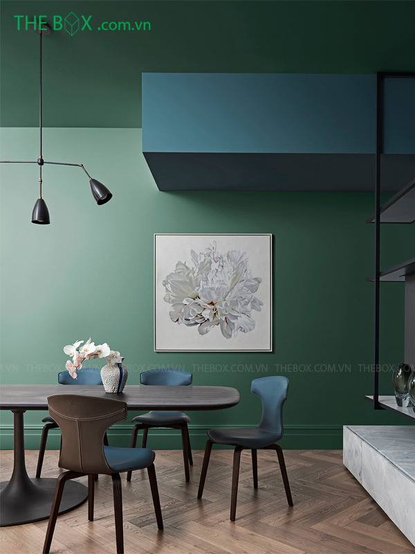 – Khu vực sáng tạo (phòng làm việc): màu xanh lá, màu nâu, xanh biển đậm sẽ tạo ra sự thay đổi tích cực cho tâm trạng