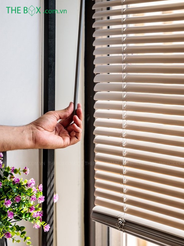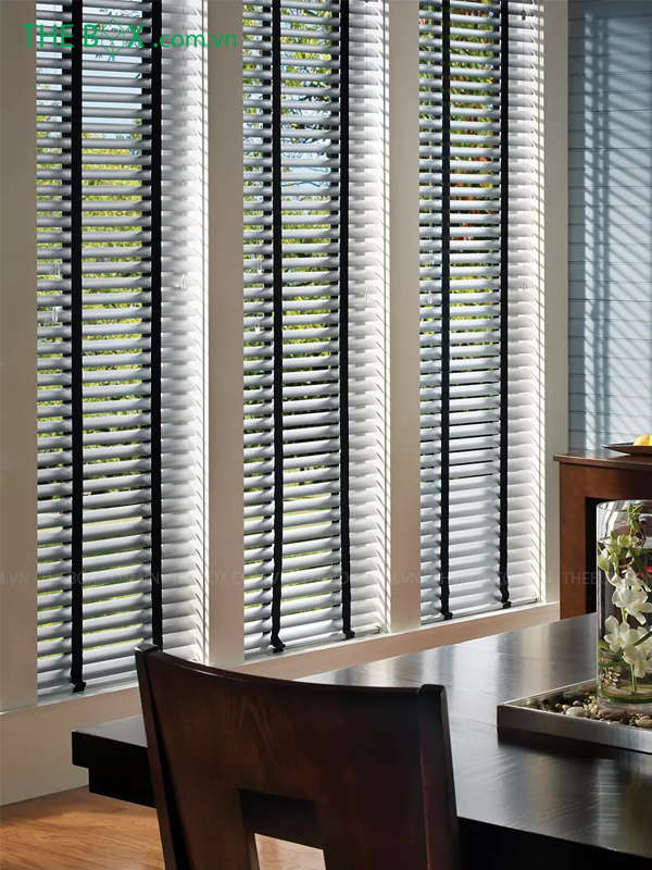 Rèm sáo nhôm có thể xoay lật lên xuống 180 độ, chất liệu lá nhôm rất nhẹ bản lá 2.5cm, được sơn tĩnh điện bóng giúp hạn chế bắt bụi.