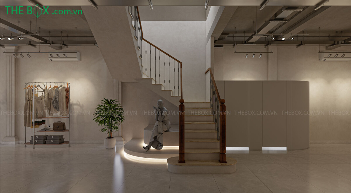 Căn nhà có kích thước và quy mô tương đối lớn, lại là căn nhà thuê – chứ không phải thuộc sở hữu của gia chủ. Đây là 1 thách thức với The Box trong việc tạo ra 1 không gian có tính thẩm mỹ – phù hợp với 1 showroom thời trang, nhưng lại hạn chế tối đa việc tác động vào hiện trạng, đồng thời đảm bảo chi phí ở mức phù hợp nhất có thể.