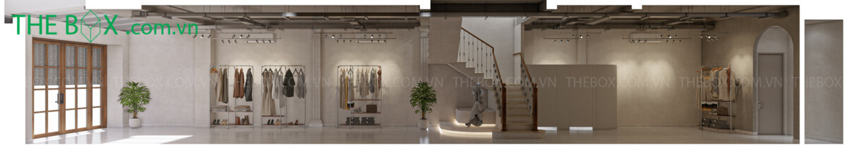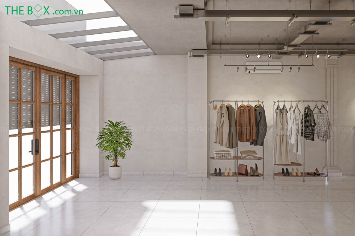 – Toàn bộ mặt tiền được giải phóng bằng những hệ vách kính lớn, nơi sẽ trưng bày mannequin (manocanh) và các bộ sưu tập thời trang
