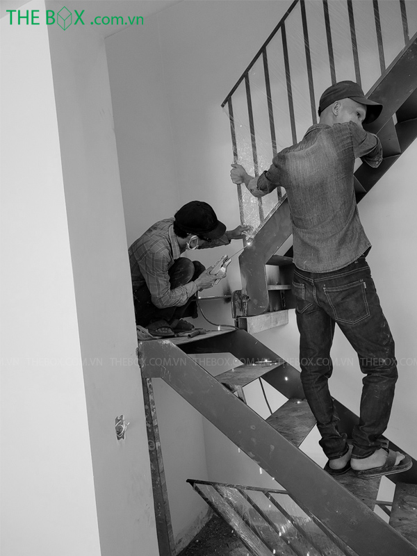 – Thay thế cầu thang bê tông cũ bằng cầu thang sắt, bậc gỗ. Đồng bộ kiến trúc khu sân trong & giếng trời.