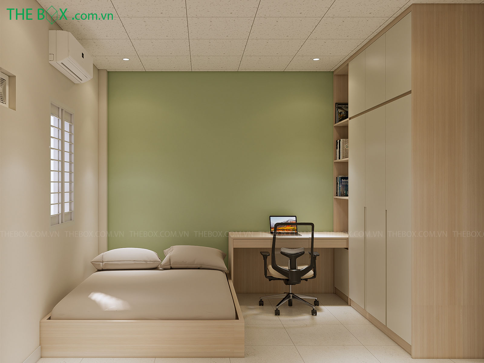 – Lầu 1 được thiết kế lại, với phòng thờ ở phía trước. Phòng ngủ cho người già với diện tích vừa đủ. Phòng ngủ sau bố trí đầy đủ công năng với giường, bàn làm việc & tủ quần áo.