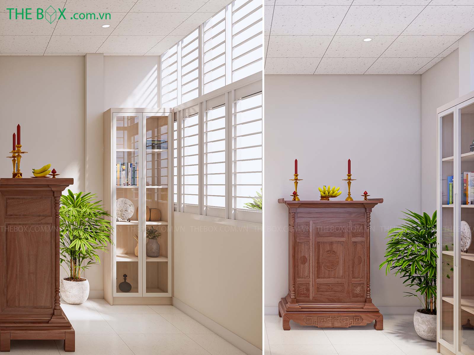 – Dời khu vực thờ cúng lên lầu 1, bố trí 1 không gian tách biệt và thoáng đãng