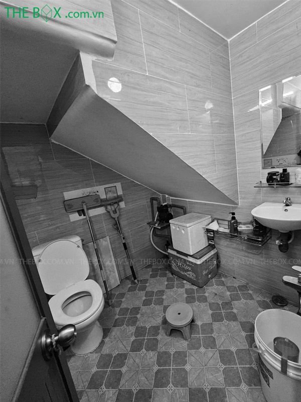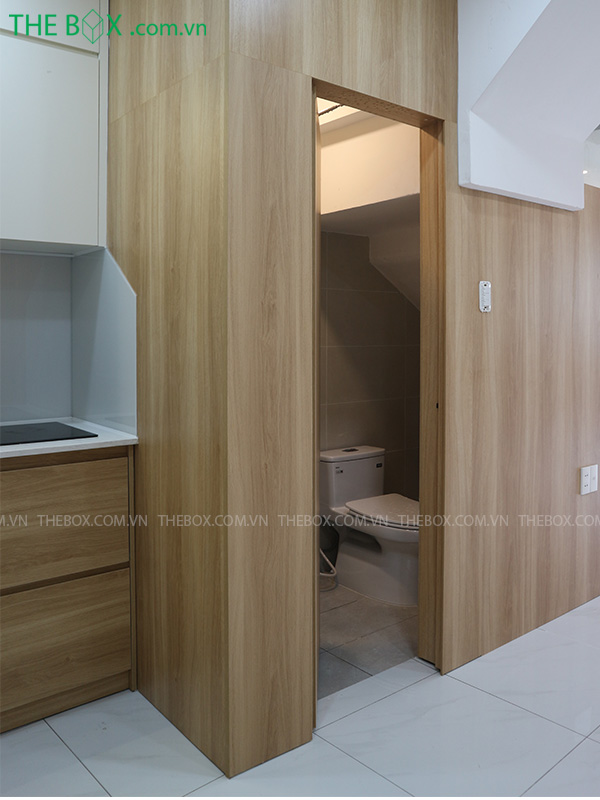 – Giảm diện tích sử dụng của khu vực nhà vệ sinh trệt, bố trí gọn gàng dưới cầu thang sau khi cải tạo. Thiết kế hệ vách ốp kết hợp hệ cửa giấu đố làm tăng tính thẩm mỹ & tinh tế trong quá trình sử dụng sau này.