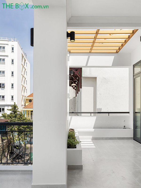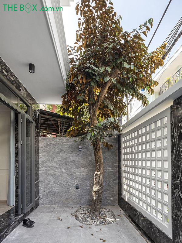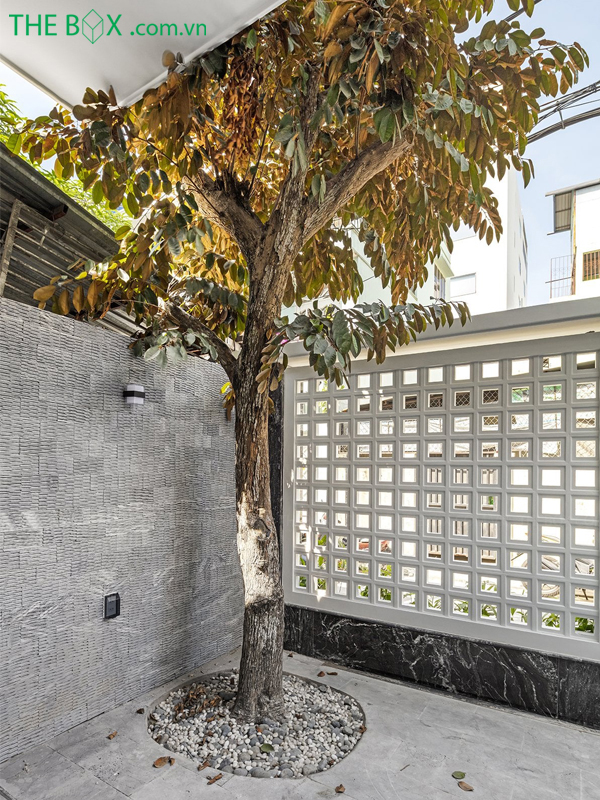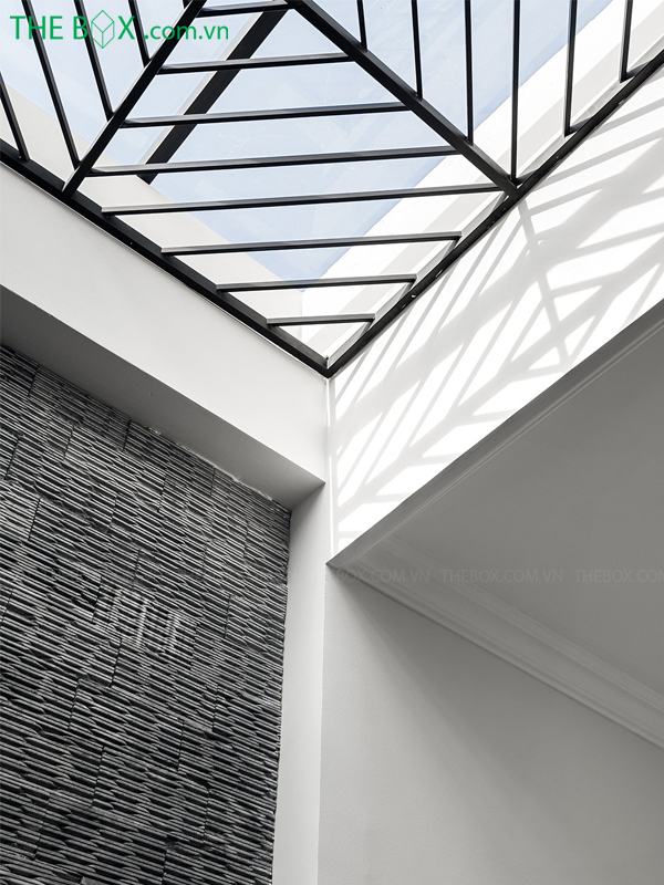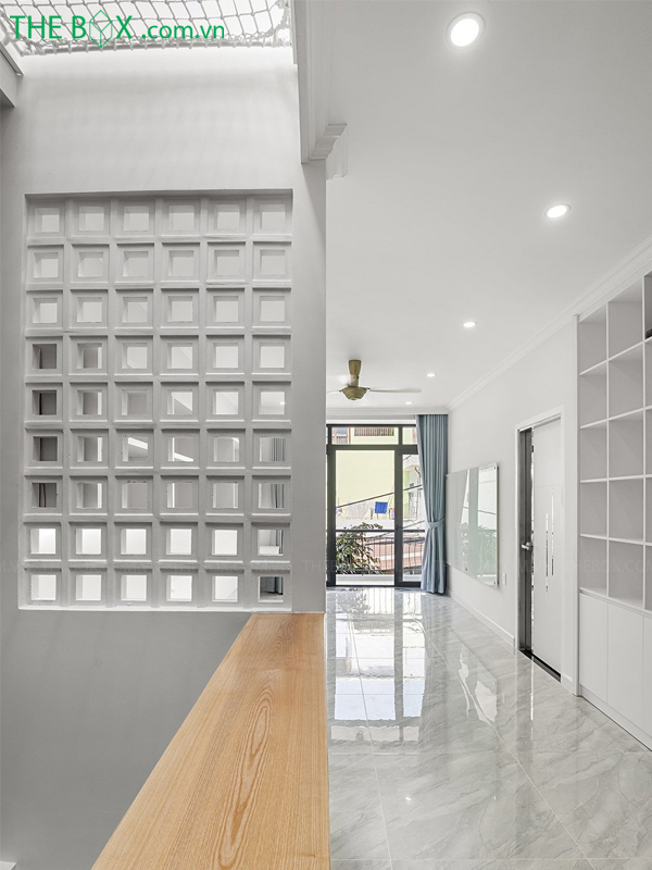 – Phương án The Box đưa ra là tạo một khoảng không liền mạch theo phương đứng ở giữa nhà, có công năng kết nối không gian các tầng, đồng thời tạo khoảng đệm lưu thông gió và ánh sáng cho các phòng chức năng.