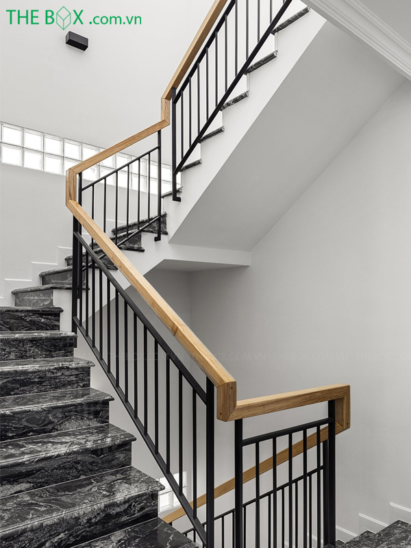 – Cầu thang được điều chỉnh lại tạo thành điểm nhấn chính của toàn bộ ngôi nhà, với bề mặt hoàn thiện bằng đá đen black forest cao cấp.