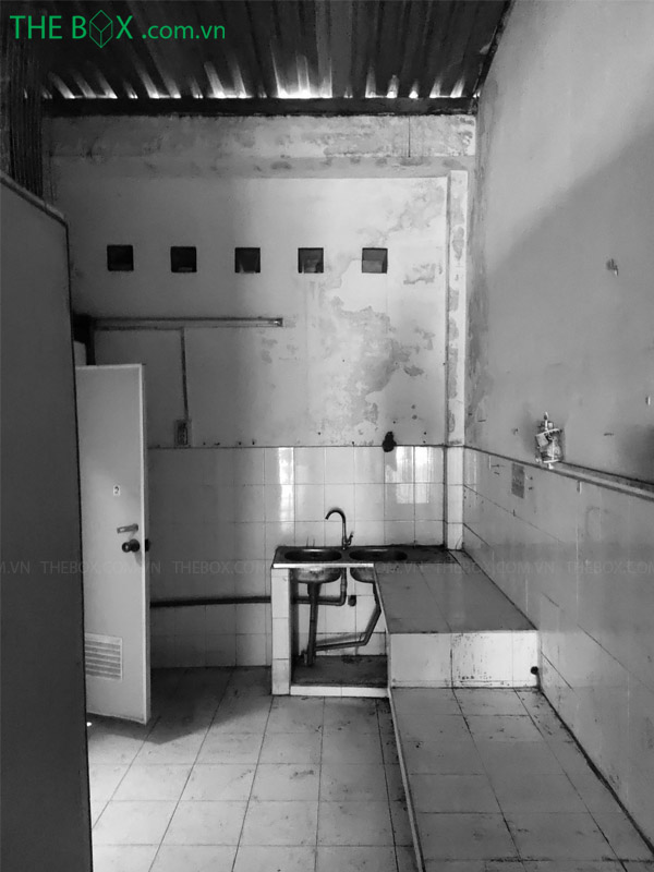 – Hệ thống mái tôn gần như bị hỏng hoàn toàn, các thanh xà gồ – vì kèo bằng gỗ đã bị mục. Gác lửng cũng không còn chắc chắn, các tường ngăn, nhà vệ sinh,… đều khá tạm bợ và xuống cấp sau thời gian dài không được sử dụng