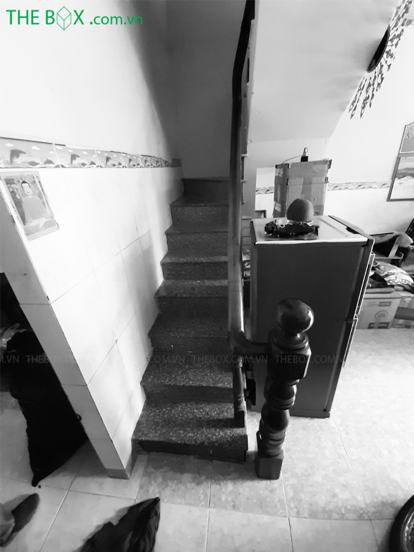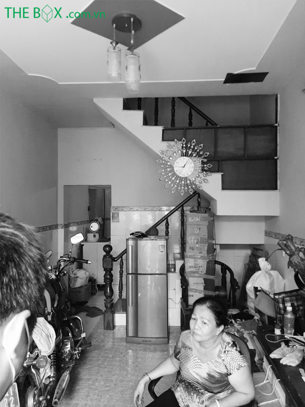 – Hiện trạng là một căn nhà phố có gác giả đặc trưng của Sài Gòn, nằm sâu trong 1 con hẻm nhỏ tại Phường Trung Mỹ Tây (Quận 12 cũ), TPHCM. Căn nhà có diện tích khá bé, chiều ngang hơn 3m và chiều dài khoảng 10m. Với kích thước ngắn như vậy, nhưng bố cục hiện tại lại không hợp lý. Cầu thang quay ngang nhà – chắn ngang luồng giao thông trước – sau, không gian bị phân tách và cảm giác bức bối chật chội. Cầu thang còn được đổ bê tông gây cảm giác nặng nề, và chiếm diện tích với không gian chật hẹp như thế này.