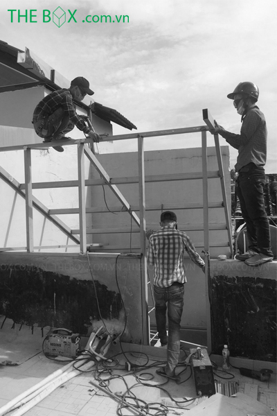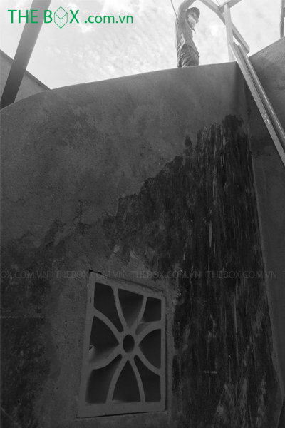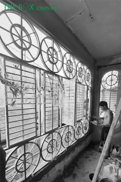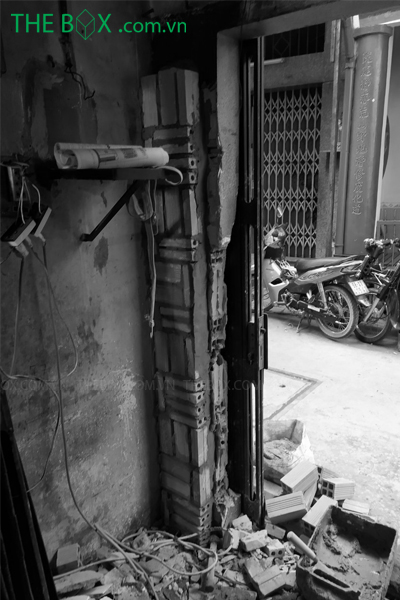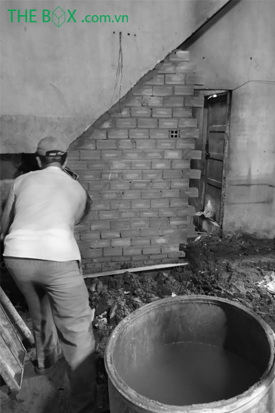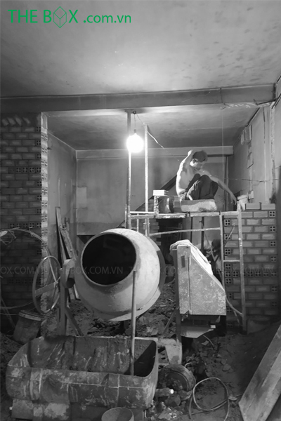 Thi công căn nhà là một trong những thách thức cũng như trải nghiệm hoàn toàn mới của đội ngũ kỹ sư, công nhân The Box. Vật tư được tập kết từ xa, vận chuyển vào công trình thông qua xe rùa, xe đẩy tay. Con hẻm nơi thi công khá nhỏ, nơi 2 xe máy cũng khó tránh nhau. Việc này gây trở ngại cho tính liên tục của công tác thi công, kéo dài thời gian thi công. Căn nhà đã trải qua hơn 50 năm tuổi, nhiều vị trí đã xuống cấp. Điều này buộc The Box phải nghiên cứu kỹ về biện pháp & quy trình thi công. Giúp gia tăng tuổi thọ và giữ được kết cấu cũ, cũng như bổ sung hợp lý những cái mới