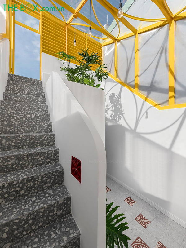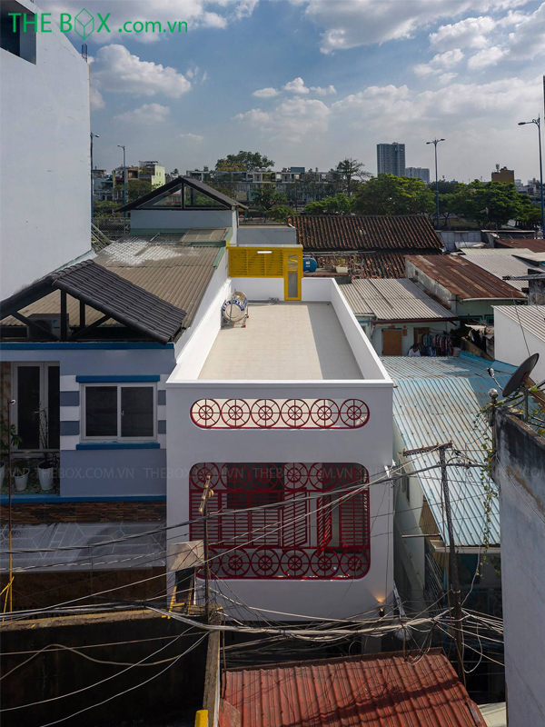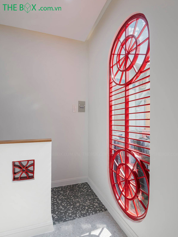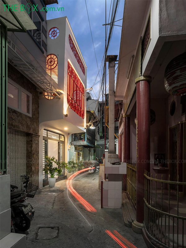 Mặt tiền được xử lý lại, với nhiều các ô thoáng bằng sắt có thể đóng mở được, vừa có tác dụng bảo vệ, vừa tạo tính liền mạch cho ngôn ngữ kiến trúc. Đường cong là yếu tố nổi bật của công trình, với nhiều chi tiết xuyên suốt như: ô cửa, hoa sắt bảo vệ, trần thạch cao, mảng tường, gạch bông gió, lan can,… Những chi tiết như gạch bông gió, các mảng tường ngăn chia thoáng – hở, màu sơn của vật liệu, chi tiết của đèn trần,… tạo nên không gian gần gũi, quen thuộc_ như chính quê hương của gia chủ vậy. The Box mong muốn thông qua công trình, gìn giữ lại không gian văn hóa của cộng đồng người Hoa ở Thành Phố Hồ Chí Minh./.